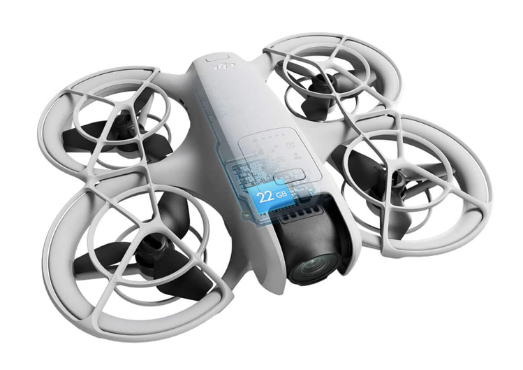 DJI Neo can hold up to 40 minutes of 4K/30fps video or 55 minutes of 1080p/60fps video, allowing you to keep all your memories stored.